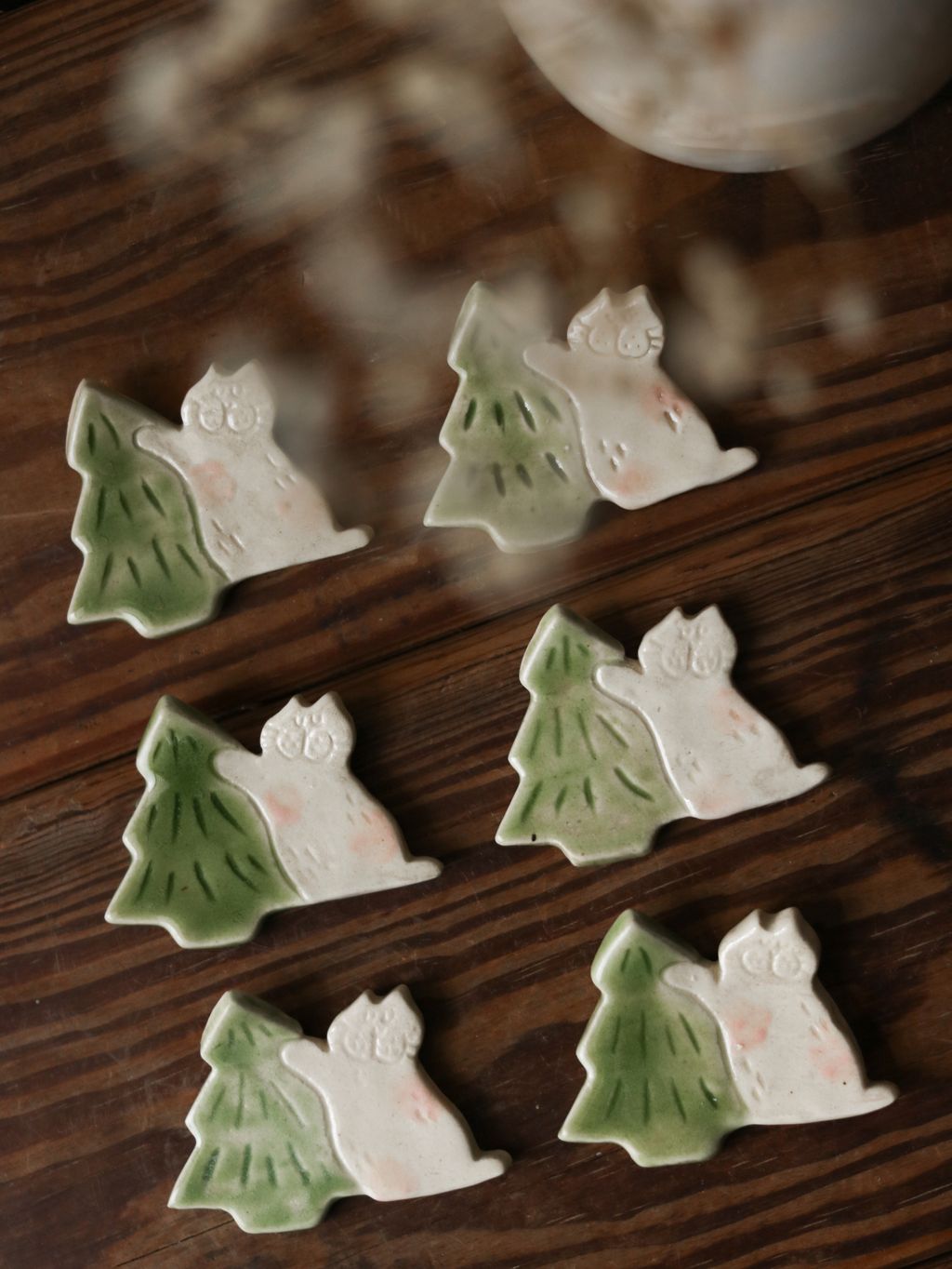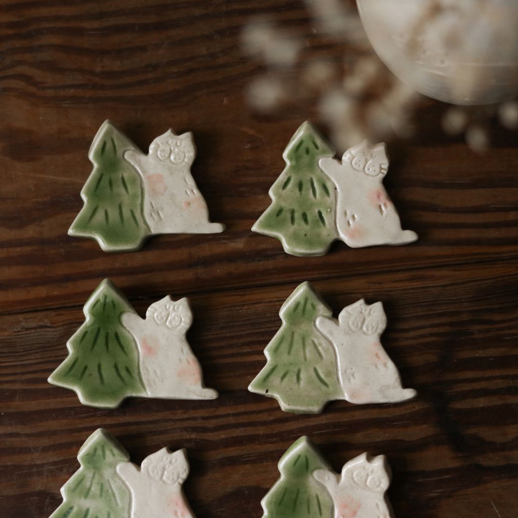 吉普貓與冷杉、松樹造型的陶瓷筷架、畫筆架
