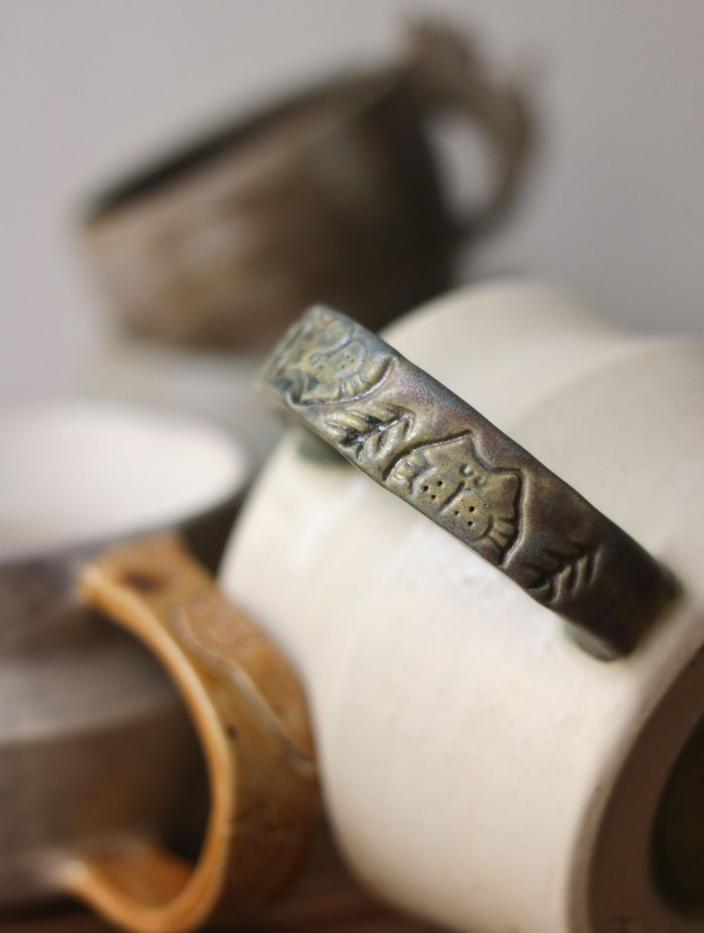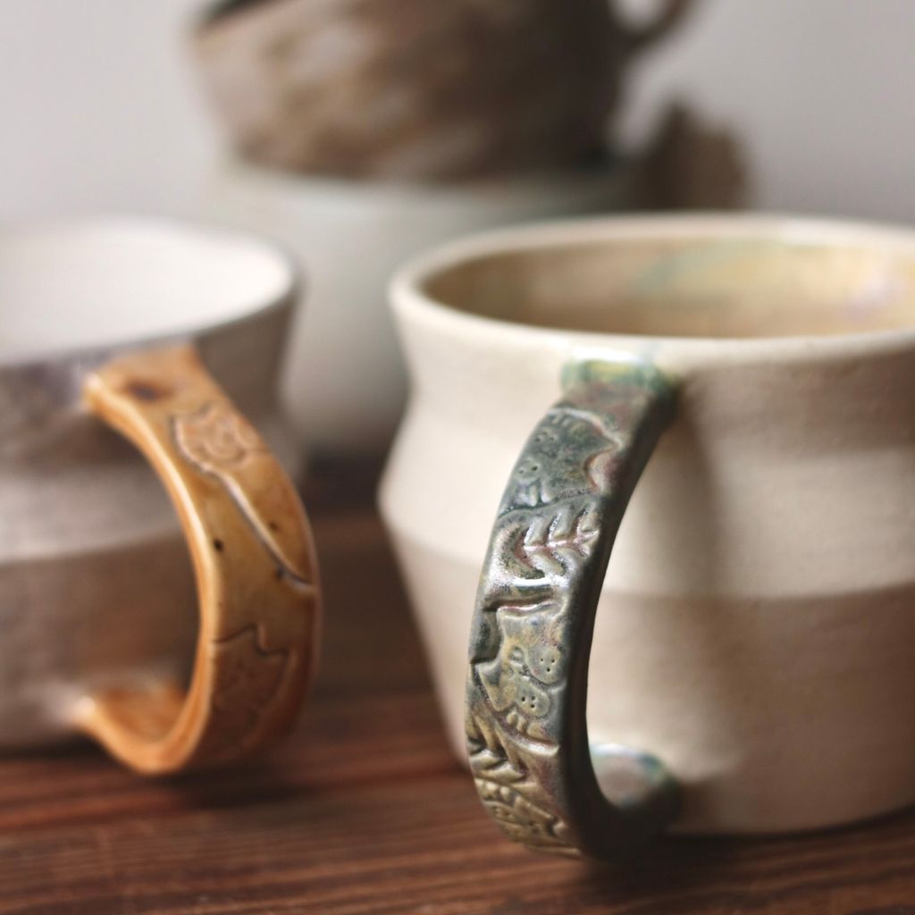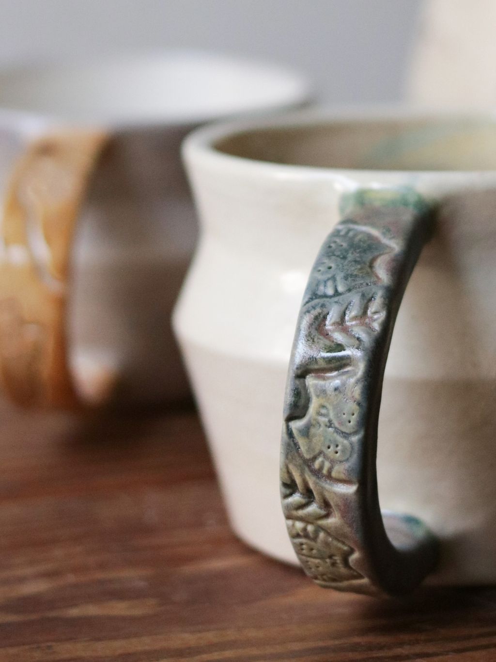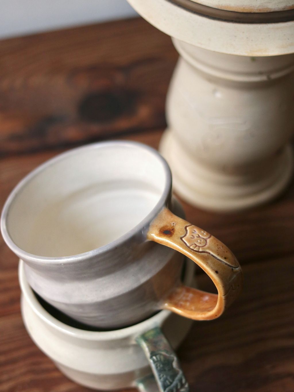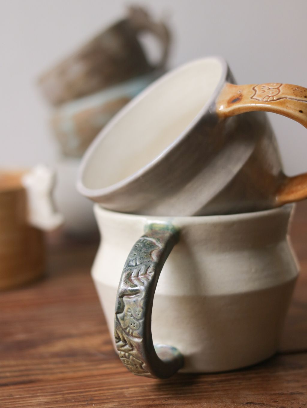 素雅的陶杯器型,以及在手柄處刻畫一點吉普貓、聖誕樹的紋樣,讓生活器皿增添一點可愛的元素。